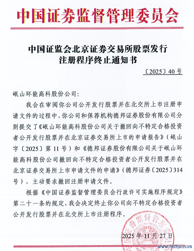 对于此次撤单,岷山环能在公告中称,基于公司自身业务发展方向及战略规划的综合考量,并结合对当前我国资本市场环境等关键因素的审慎分析,经与保荐机构进行深入沟通与专业论证后,公司决定撤回上市申请文件。