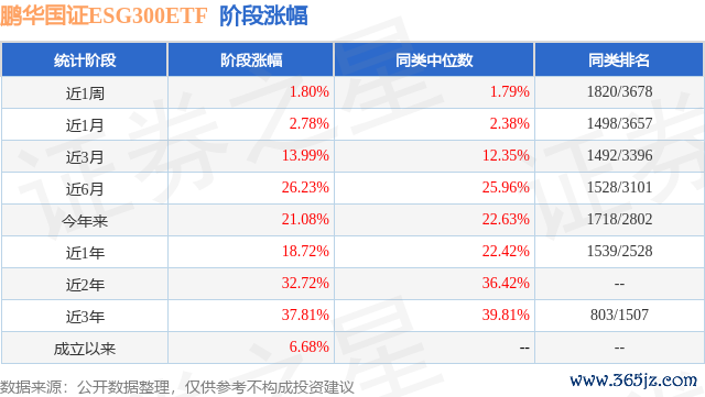 从业绩表现来看,鹏华国证ESG300ETF基金过去一年净值涨幅为6.38%,在同类基金中排名1519/2216,同类基金过去一年净值涨幅中位数为11.09%。而基金过去一年的最大回撤为-16.59%,成立以来的最大回撤为-32.61%。