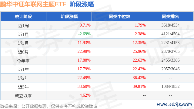 从业绩表现来看,鹏华中证车联网主题ETF基金过去一年净值涨幅为14.61%,在同类基金中排名844/2216,同类基金过去一年净值涨幅中位数为11.09%。而基金过去一年的最大回撤为-20.48%,成立以来的最大回撤为-44.31%。